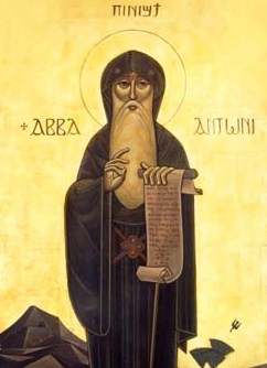 l to r: Edward Gibbon, Abba Antony, as represented in a painting by Joshua Reynolds and a traditional icon |