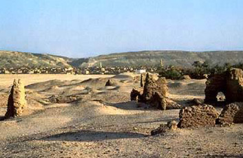 l to r: Hermit settlements in the Nitria-Scetis regions; remains of Kellia hermitages |