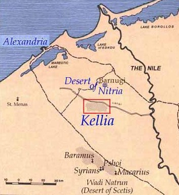 In the early fourth century CE, the Egyptian hermit Amoun (c.290-c.355) retreated into the desert of Nitria, south of Alexandria. He is credited with commencing the eremitical lifestyle in this area of the Nile Delta. The phenomenon quickly spread to Kellia and the adjacent desert of Scetis (Wadi Natrun). That lifestyle is sometimes classified as semi-anchoritic, because the ascetics in those areas were not entirely cut off from human contact. In the Nitria-Scetis regions they lived in semi-isolation, intent upon solitary contemplation in their own cells while having the option of contact with neighbours.